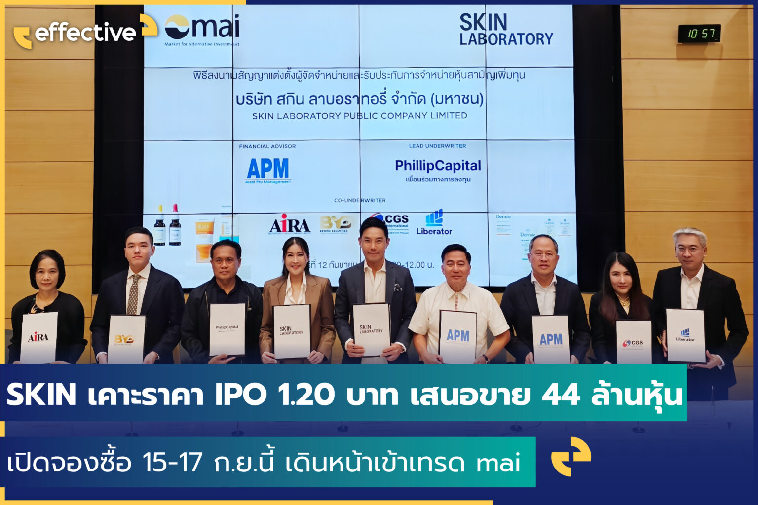 SKIN เคาะราคา IPO 1.20 บาท เสนอขาย 44 ล้านหุ้น เปิดจองซื้อ 15-17 ก.ย. นี้ เดินหน้าเข้าเทรด mai
