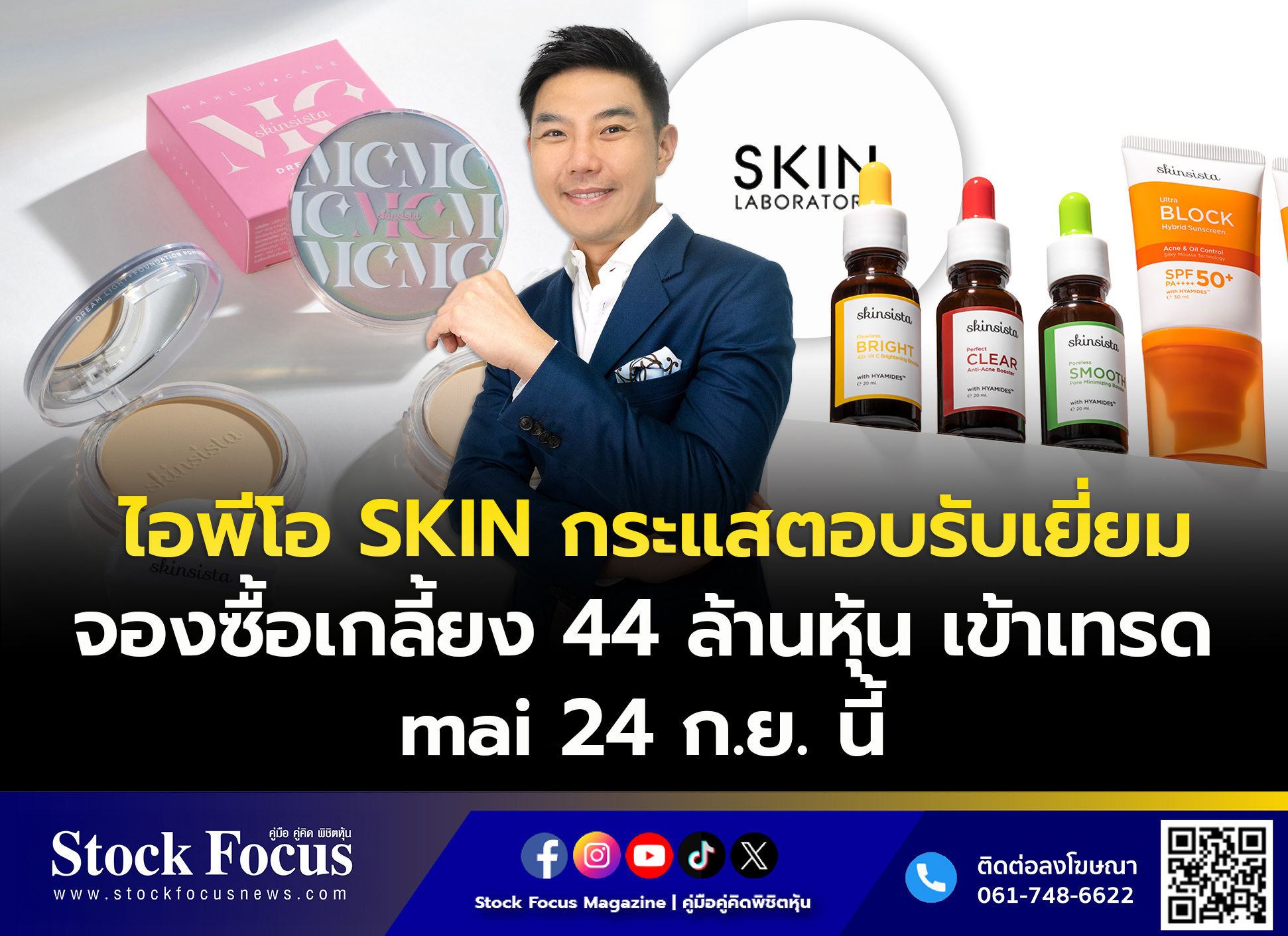 ไอพีโอ SKIN กระแสตอบรับเยี่ยม จองซื้อเกลี้ยง 44 ล้านหุ้น เข้าเทรด mai 24 ก.ย. นี้